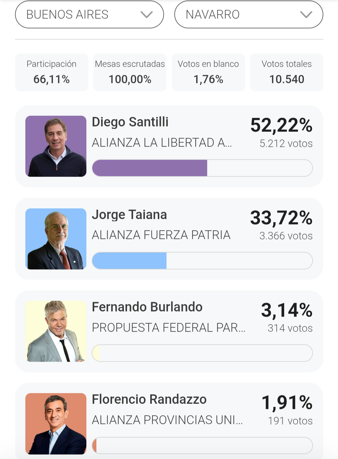 NAVARRO ELIGIÓ : LOS RESULTADOS DIERON A LA ALIANZA LIBERTAD AVANZA GANADORA CON EL 52%