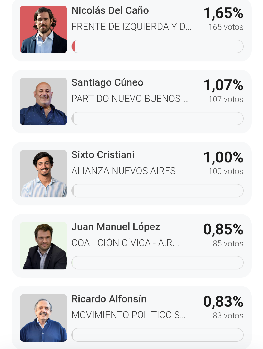 1.07% (107 votos) Santiago Cuneo (Partido Nuevos Buenos Aires)