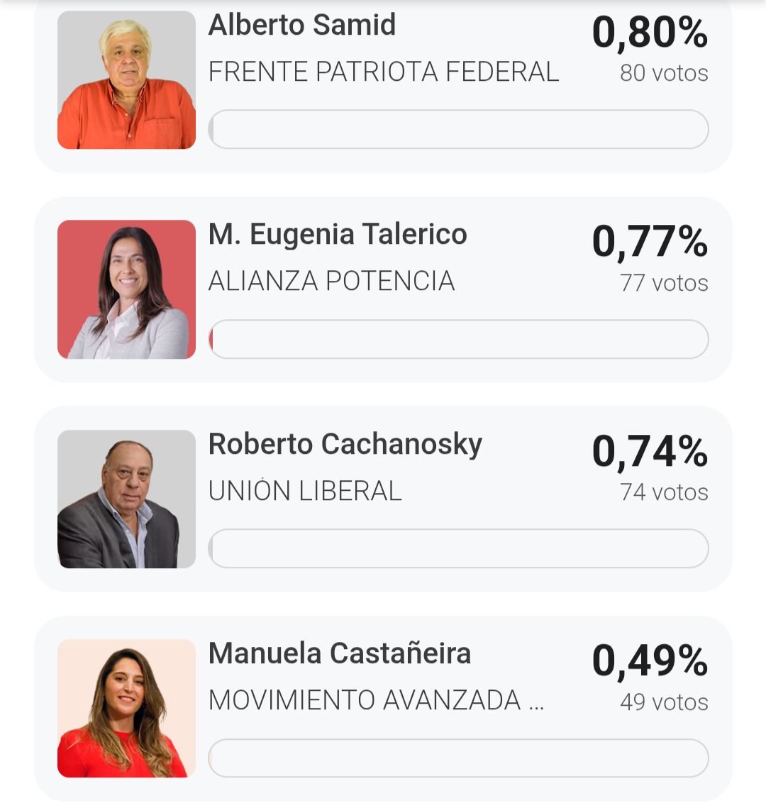 0.77% (77 votos) María Eugenia Talerico (Alianza Potencia)