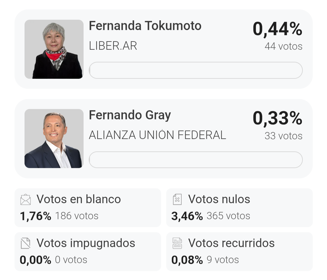 0.33% (33 votos) Fernando Gray (alianza Unión Federal)