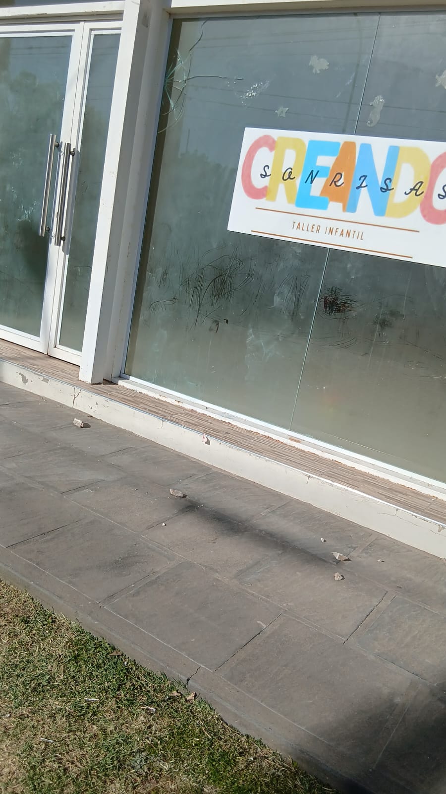 "lo que paso fue que en el dia de ayer, en el horario de 13.00 a 17.00 hs el taller se encontraba solo y nos reventaron la vidriera a piedrazos, nosotras nos enteramos porque una persona fue a guardar la camioneta, vio los cascotes y el vidrio y nos mando.
