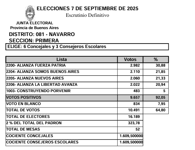 RESULTADO EN NUESTRO PUEBLO DE LAS ELECCIONES DEL 07 DE SEPTIEMBRE