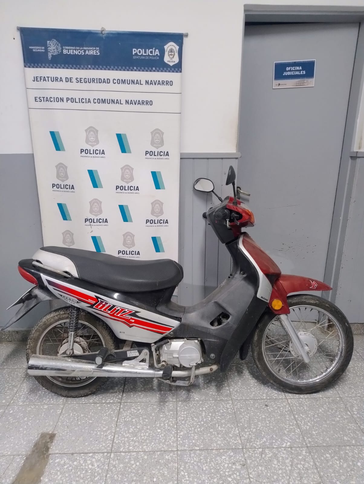 Fecha, personal policial juntamente con personal de transito de Navarro en Calles 24 y 7 , procedió secuestro de motocicleta Motomel B-110, ptte. A149, guiada por masculino de navarro, por Infracción Art. 40 Inc. "C", Ley 24.449. Interv. Juzgado de Faltas Navarro.-