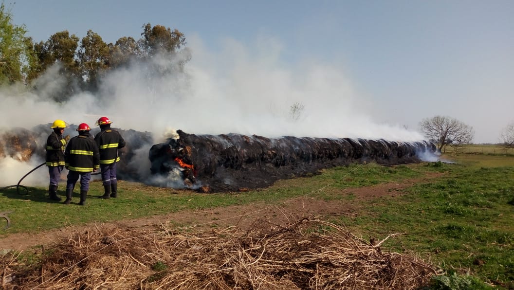 Hace instantes, salió una unidad y seis bomberos, por el incendio de unos rollos en un campo sobre la Ruta 47, camino a Luján.