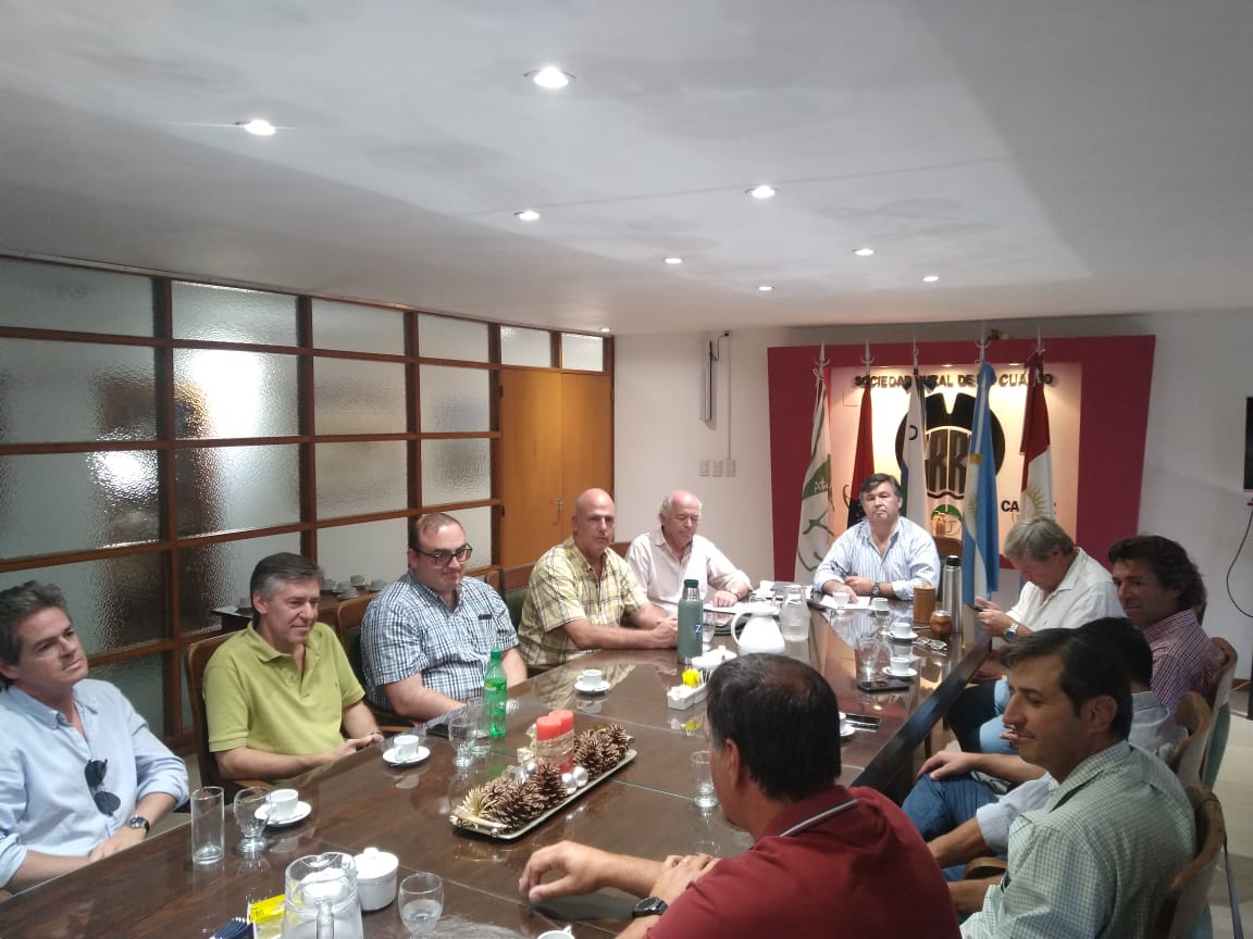 Daniel Pelegrina y Carlos Vila Moret, la dupla que conduce la Sociedad Rural, concilian posiciones con los delegados del distrito 4 de esa entidad, antes de la asamblea agropecuaria que se realizará esta tarde en Río Cuarto.