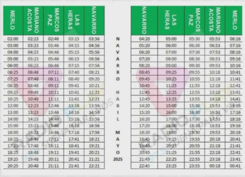 NAVARRO - LAS HERAS - MARCOS PAZ - MERLO - PADUA- MORON- RAMOS MEJÍA-LINIERS Y VICEVERSA